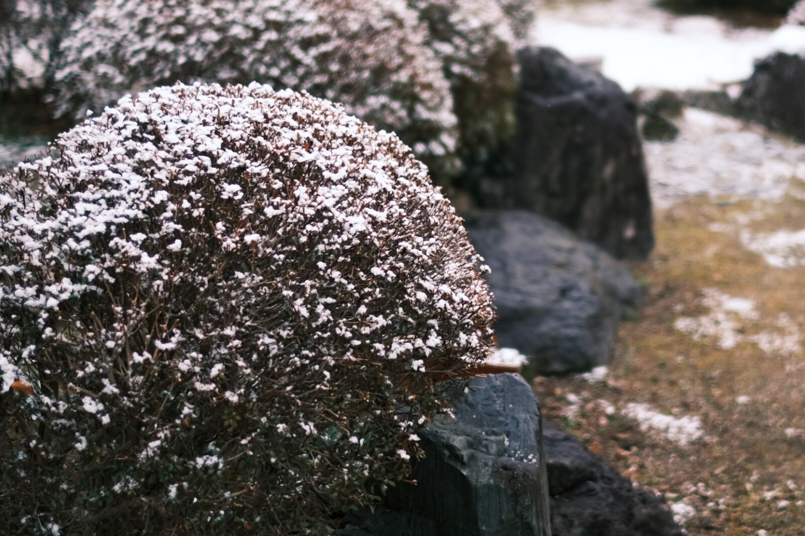 庭に雪がうっすら