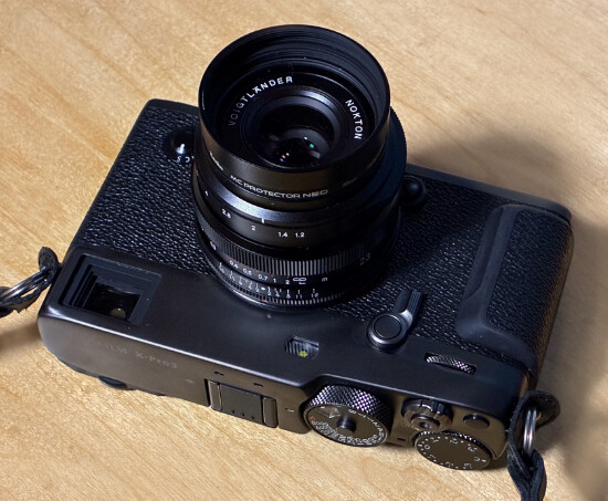 X-Pro3 には光学式OVFと電子式EVFが搭載されていて、前のレバーで切り替えできる。日常使いには Nokton 23mm F1.2(35mm相当)を使い
