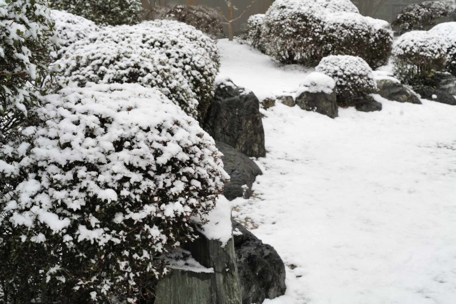 庭に雪が