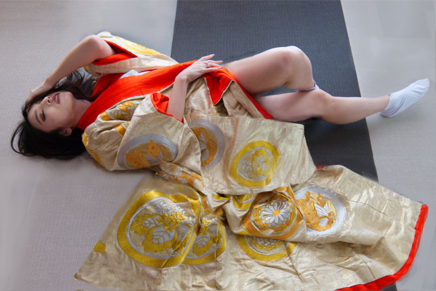 余りにも着物がきれいで、カラーが撮れる Q2 も持ってきたらよかったと思ったが、こうして見るとモノクロの写真もよい。